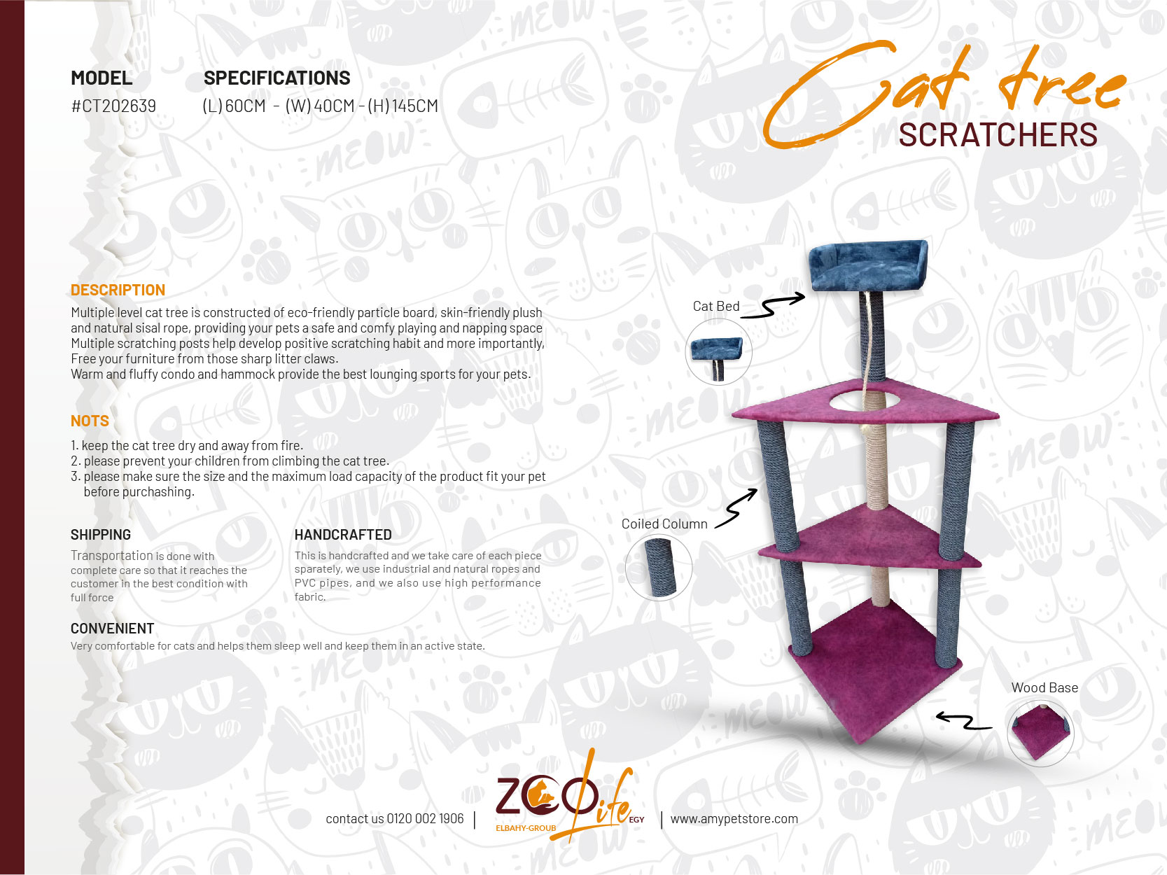 Multiple level cat tree is constructed of eco-friendly particle board, skin-friendly plush and natural sisal rope, providing your pets a safe and comfy playing and napping space